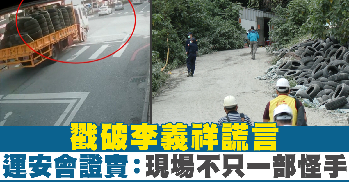 工地路旁充滿廢輪胎,疑似就是事故當天早上,工程車所載來的,另外,透過監視器畫面還可以看到,事故當天早上8點09分,李義祥駕駛的工程車,車上除了李義祥外,副駕駛座還有一名男子,與之前李義祥說,只有他一人進出工地,明顯不符,而這名副駕駛,疑似就是李義祥非法雇用的外籍移工。