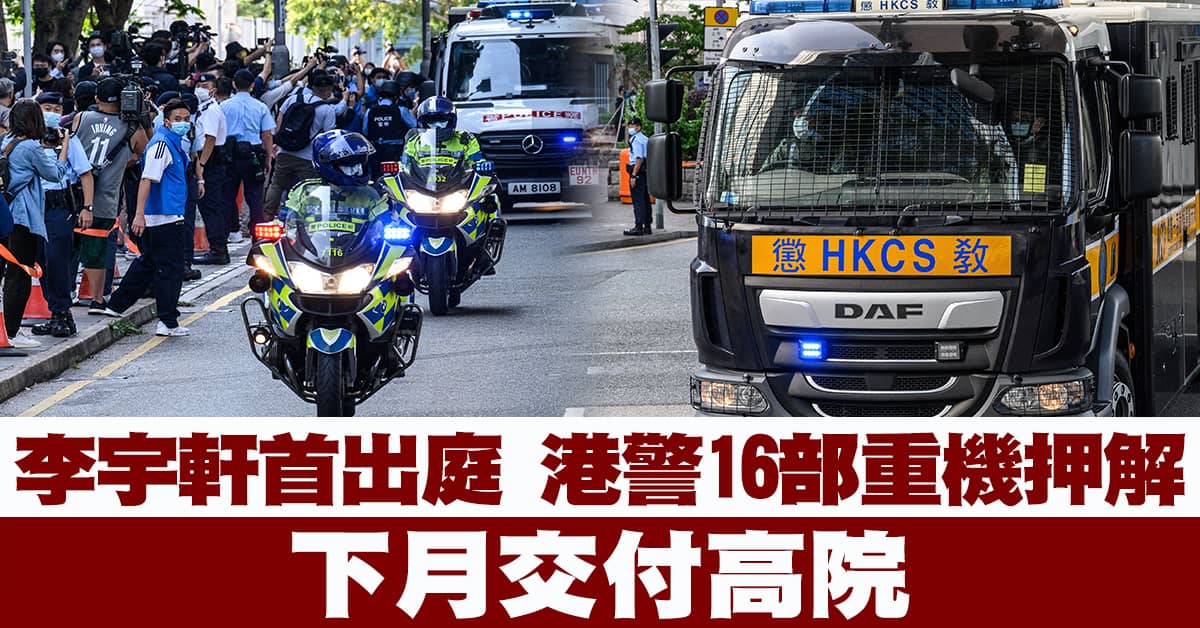 李宇軒首出庭 港警16部重機押解 下月交付高院