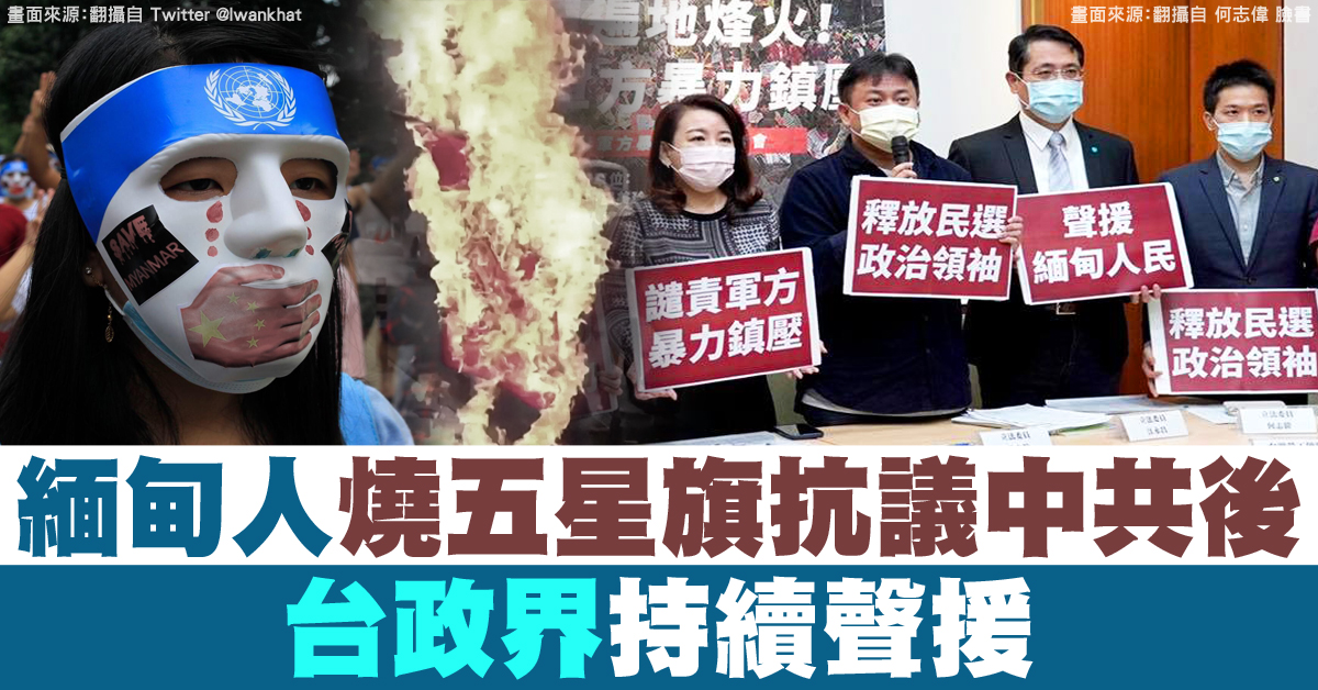 緬甸人燒五星旗抗議中共後 台政界持續聲援