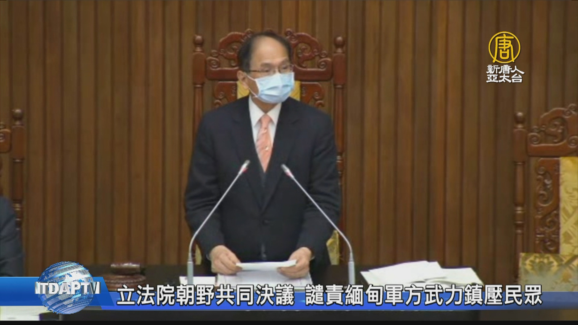 【新唐人亞太台 2021 年 04 月 09 日訊】針對緬甸軍方持續以武力鎮壓緬甸示威民眾,立法院院會今天(9日)通過朝野共同提案,譴責緬甸軍方對平民動武及踐踏人權,並做成三項決議,包括支持國際為恢復緬甸民主的決定與行動,呼籲緬甸軍方勿使用武力。對於緬甸台商與僑民,中華民國政府應加強保護。另外,政府基於人道考量,在緬甸情勢緩解前,對滯留在台的緬甸人士,應以個案情形放寬在台停留期限。