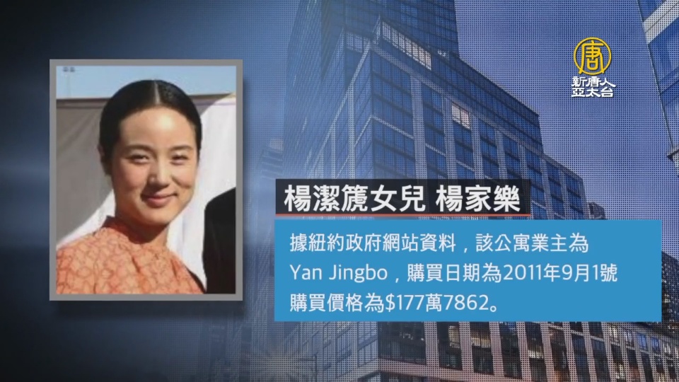 3月18號在美中高層會談中,中共外事辦主任楊潔篪的戰狼表現,引發網友好奇,楊潔篪這麼愛國肯定有問題。果不其然,網友挖出楊潔篪妻子和女兒在美國華盛頓DC有一套房產,在曼哈頓還有一套河景公寓。