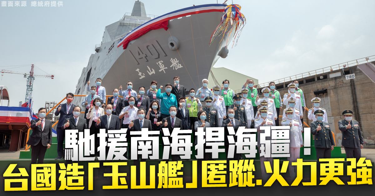 2021-04-13 20:11:43火線新聞,馬上帶您鎖定,國艦國造又有新進展!海軍「新型兩棲船塢運輸艦」,今天舉行命名暨下水典禮,總統蔡英文特別南下主持,並命名為「玉山軍艦」,蔡總統強調,這是國艦國造的一個重要里程碑,相信玉山艦能強化海軍任務執行能力,讓國防力量更堅實。玉山艦是海軍首艘萬噸級兩棲運輸艦,將擔負南海、外島運輸主力,執行野戰醫院及國際人道救援,戰時還可執行兩棲作戰任務。