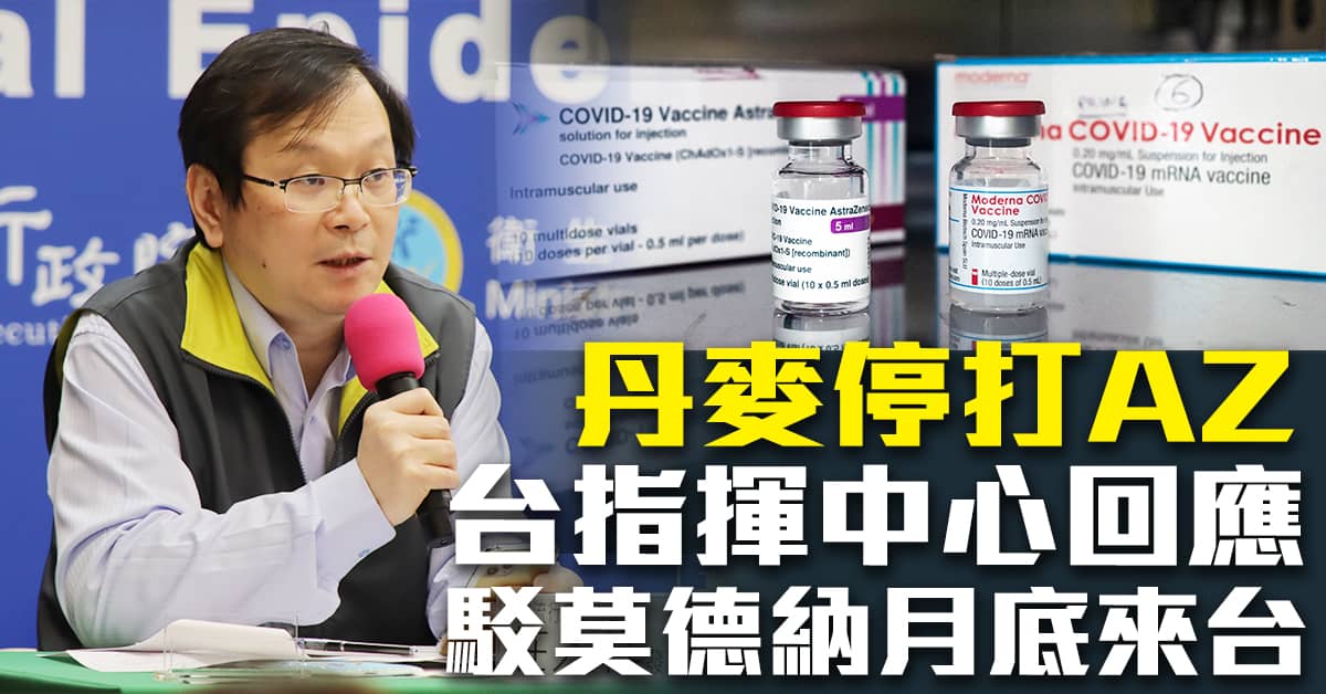 丹麥停打AZ 台指揮中心回應.駁莫德納月底來台