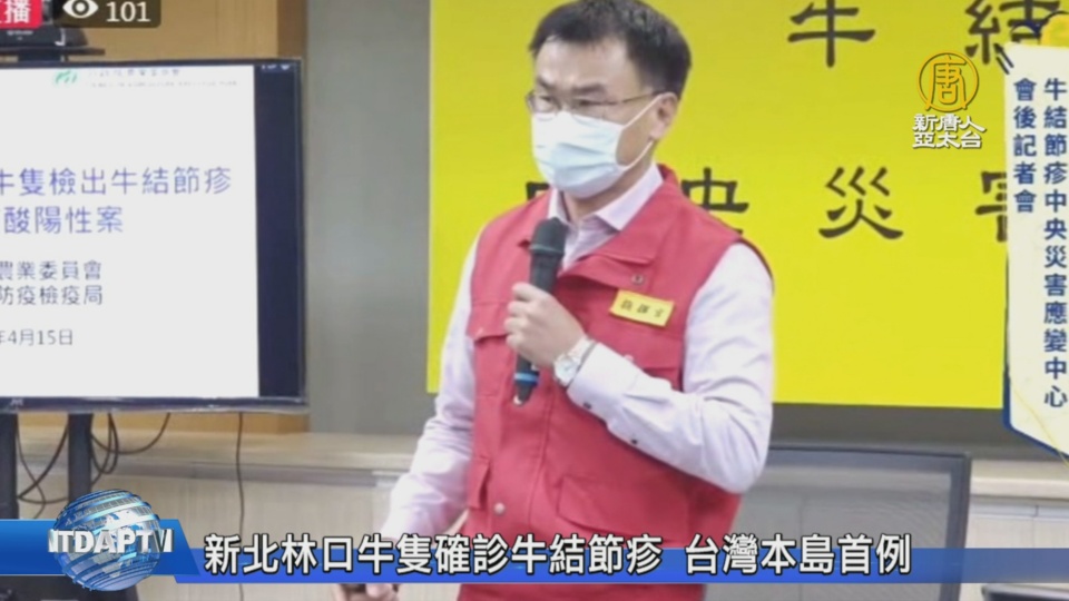 【新唐人亞太台 2021 年 04 月 15 日訊】歡迎回來,帶您關心,台灣本島發現首例牛結節疹案例,農委會主委陳吉仲今天晚間出面說明。為避免疫情擴散,衝擊畜牧產業,將啟動全台牧場訪視,以及注射疫苗。農委會表示,病毒序列比對與中國大陸病毒株完全相同。加上牧場位置在新北林口,緊鄰台北港,研判病媒蚊是透過船隻輸入。