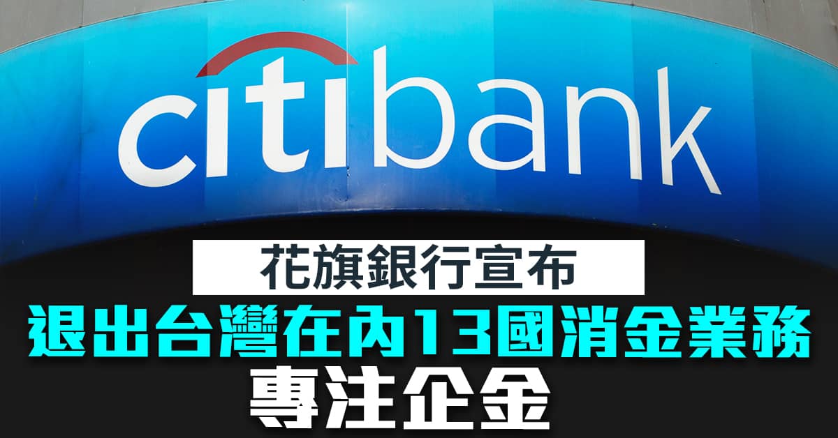 花旗銀行宣布退出台灣在內13國消金業務 專注企金