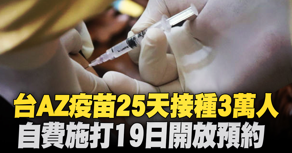 台AZ疫苗25天接種3萬人 自費施打19日開放預約