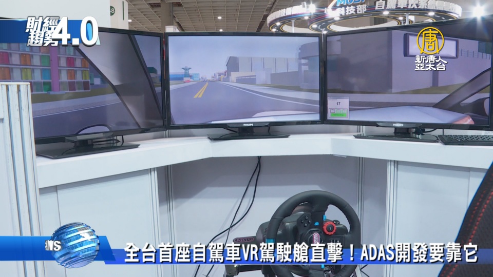 方向盤、剎車自動操作,如同真實道路行車情境,在虛擬世界中測試「自駕」可靠性,台灣第一套自駕車VR模擬駕駛艙,運用「虛實整合模擬驗證技術」,從彰濱工業區,整套班師南港展覽館,讓民眾親身體驗。