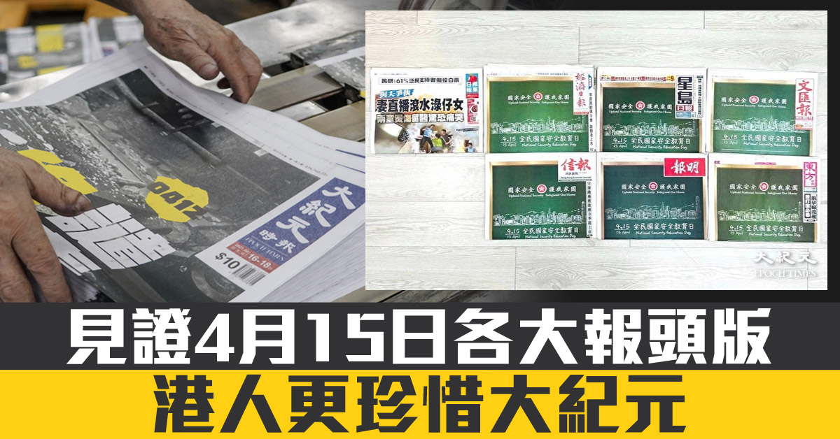 見證4月15日各大報頭版 港人更珍惜大紀元|中國一分鐘
