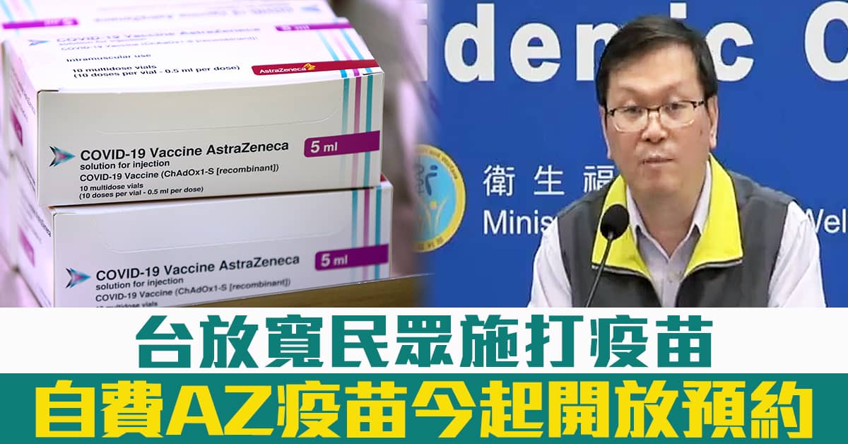 台放寬民眾施打疫苗 自費AZ疫苗今起開放預約