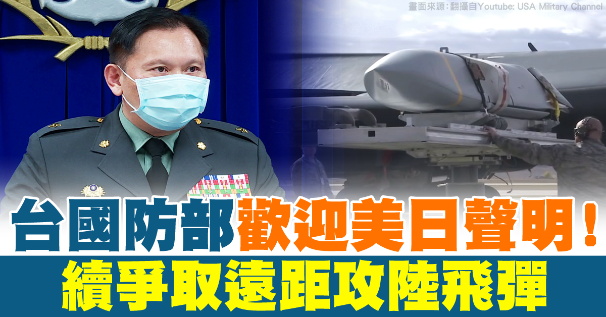 台國防部歡迎美日聲明 續爭取遠距攻陸飛彈