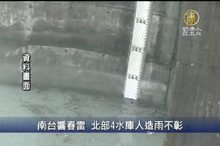 2011-04-18 21:11:43台灣觀測史上「最晚的春雷」,17日晚間終於在南台灣響了,當然春雨也伴隨著雷聲降下,不過儘管響了春雷,近半年來累積的雨量還是很少,水庫蓄水量也拉警報。目前,從北部的桃園,到中部的彰化。已經實施夜間減壓供水;北台灣的4水庫也在17日啟動了人造雨作業,可惜效果不彰。目前中北部地區已實施夜間減壓供水,但進水量仍入不敷出。如果到了5月底,水庫還是沒進帳,恐將實施第二段限水。