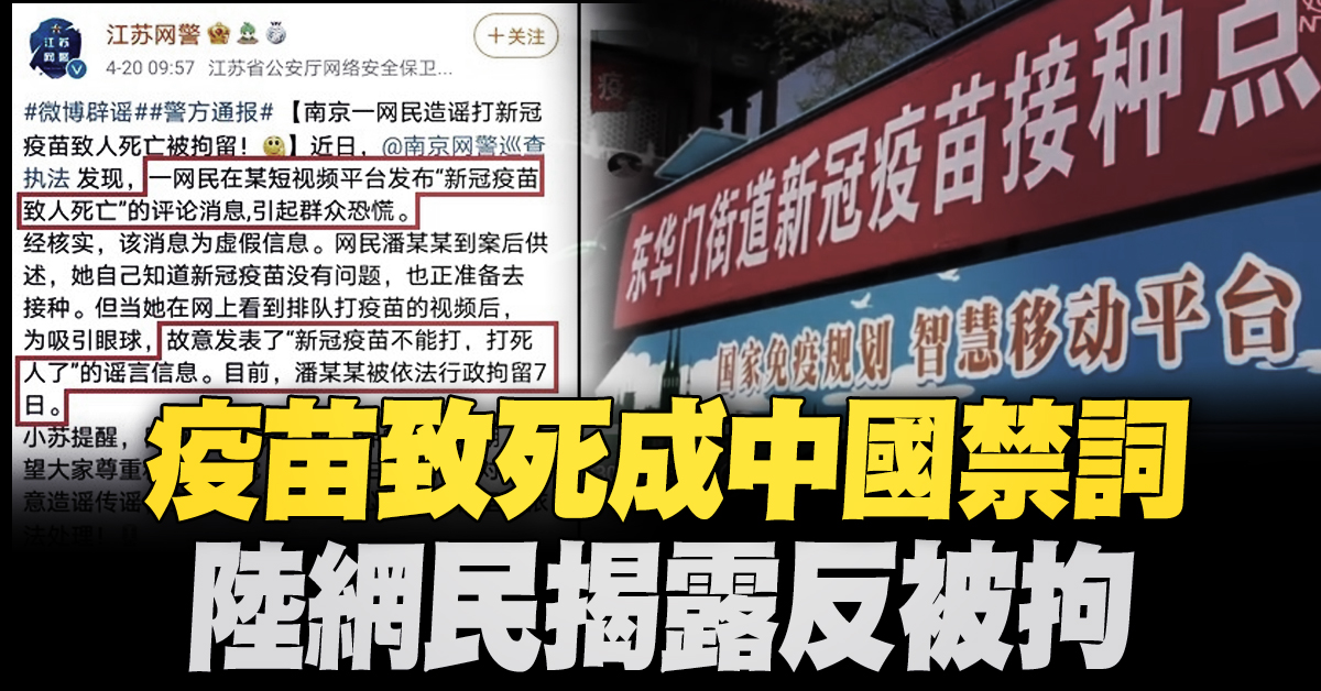 疫苗致死成中國禁詞 陸網民揭露反被拘