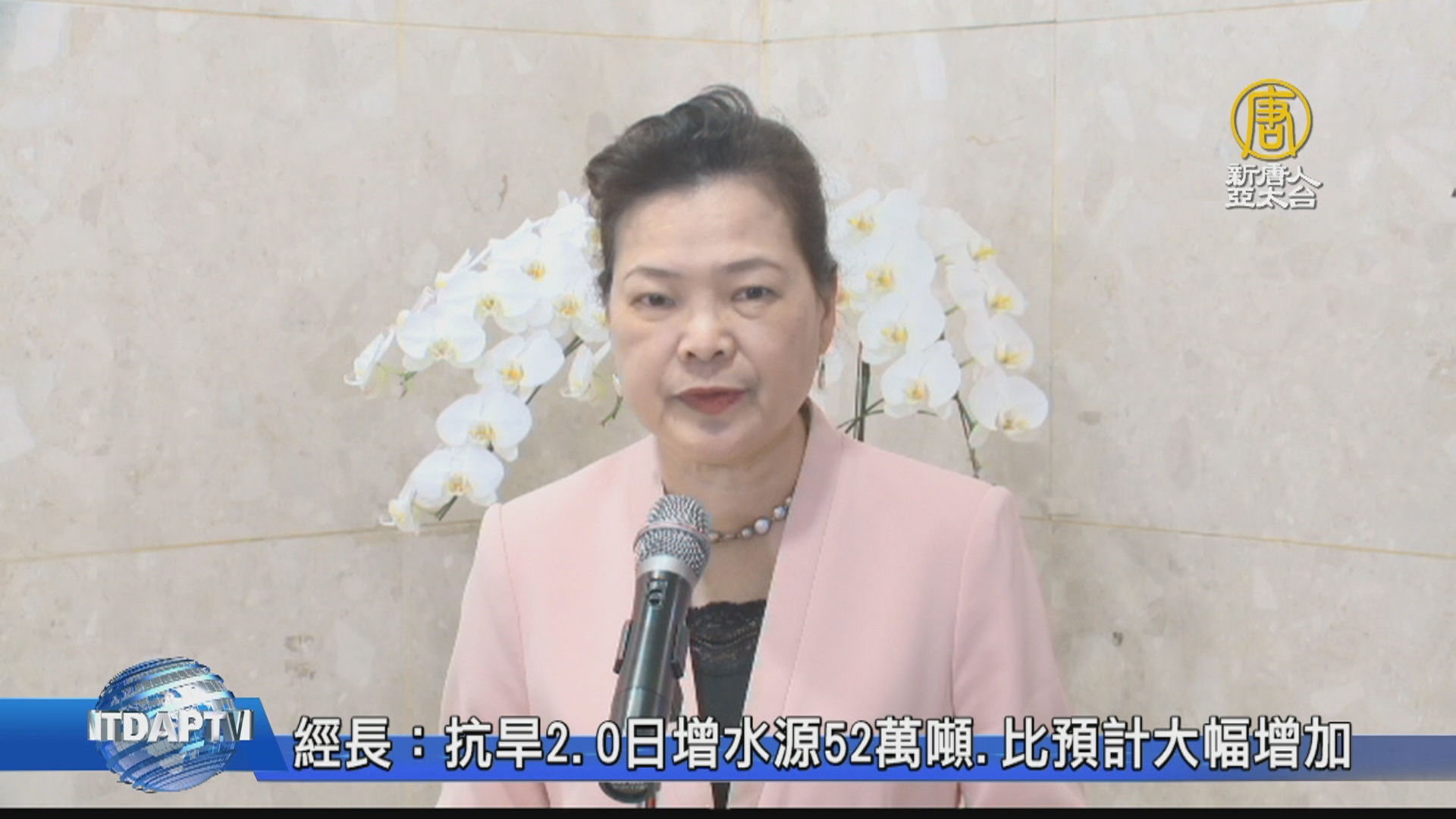 經濟部長 王美花:「抗旱2.0的這個方案,我們原來預估的這個,可以增加的量,我們現在其實是大幅的增加,大概可以增加到52萬噸的水量。節水效果非常好,再增加這些的地下水源,包括水井跟伏流水等等,那這樣的話,我們確實對短期的這樣供應,可以維持現在供五停二的情形。」