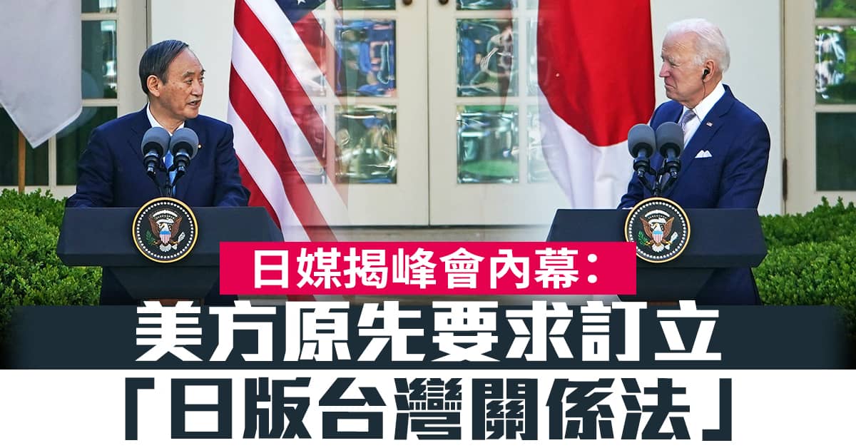 日媒揭峰會內幕:美方原先要求訂立「日版台灣關係法」