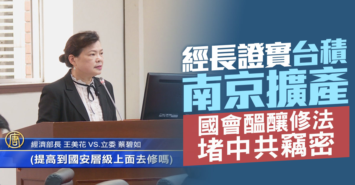 【新唐人亞太台 2021 年 04 月 28 日訊】產業動態來關心,立法院經濟委員會,28日討論營業秘密法草案修法,就是因為,近期紅色資本竊取商業機密,已經是防不勝防,也衝擊台灣重要的半導體產業,針對台積電計畫擴大南京廠產能,經濟部長王美花也證實這項消息,不過王美花強調,台積電會將先進製程放在台灣。