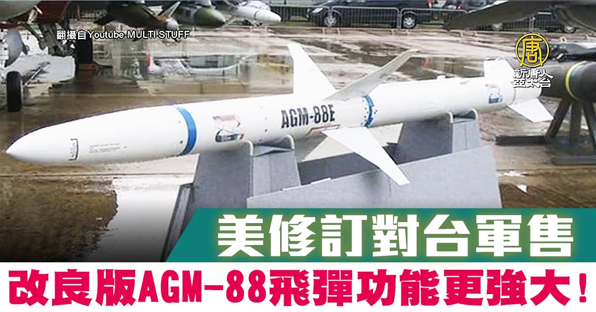 【新唐人亞太台 2021 年 04 月 28 日訊】歡迎回來,來關心,2017年美國川普政府批准,出售台灣,反制偵蒐雷達的「AGM-88B」空射反輻射飛彈,合約總值1.38億美金。美國國防部宣布由洛克希德馬丁取得1.38億美元修訂合約,將為台灣F-16戰機提供改良後的「AGM-88E」飛彈,相較先前版本,「AGM-88E」雷達軟體、數據系統都有更新改良,配有更先進的敵我識別系統,未來將裝備台灣的F-16機隊,相關工作將在德州沃斯堡及台灣進行,預計在2022年9月底完成。台灣立委王定宇表示, AGM-88E功能強大,除了打擊敵方防空系統,「甚至可以攻擊已經關機的雷達」,將會增強台灣空軍戰力。