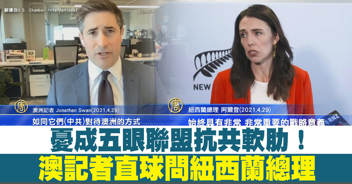 【新唐人亞太台 2021 年 04 月 30 日訊】五眼聯盟美國、澳洲、英國、加拿大和紐西蘭,過去在川普政府主導下,強硬防堵中共滲透全球,譴責中共迫害人權。不過,紐西蘭今年不但與中方簽下新貿易協定,紐國外長和貿易部長,還相繼發表了傾向北京當局的言論。29日,一名澳洲記者直接向紐西蘭總理提問,對中立場。