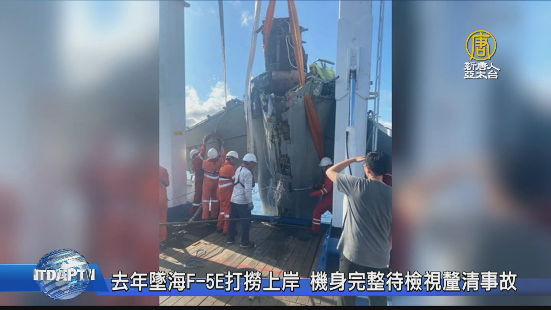 【新唐人亞太台 2021 年 04 月 30 日訊】歡迎回來,帶您關心,台灣一架F-5E戰機,去年10月29號由飛官朱冠甍駕駛,從台東基地起飛不久後墜海,經過半年時間,機身終於在今天被打撈出水面。空軍司令部表示,後續將依調查程序,由各專業單位、運安會調查官及民間發動機專業人士等,共同檢視殘骸,釐清事故細節。