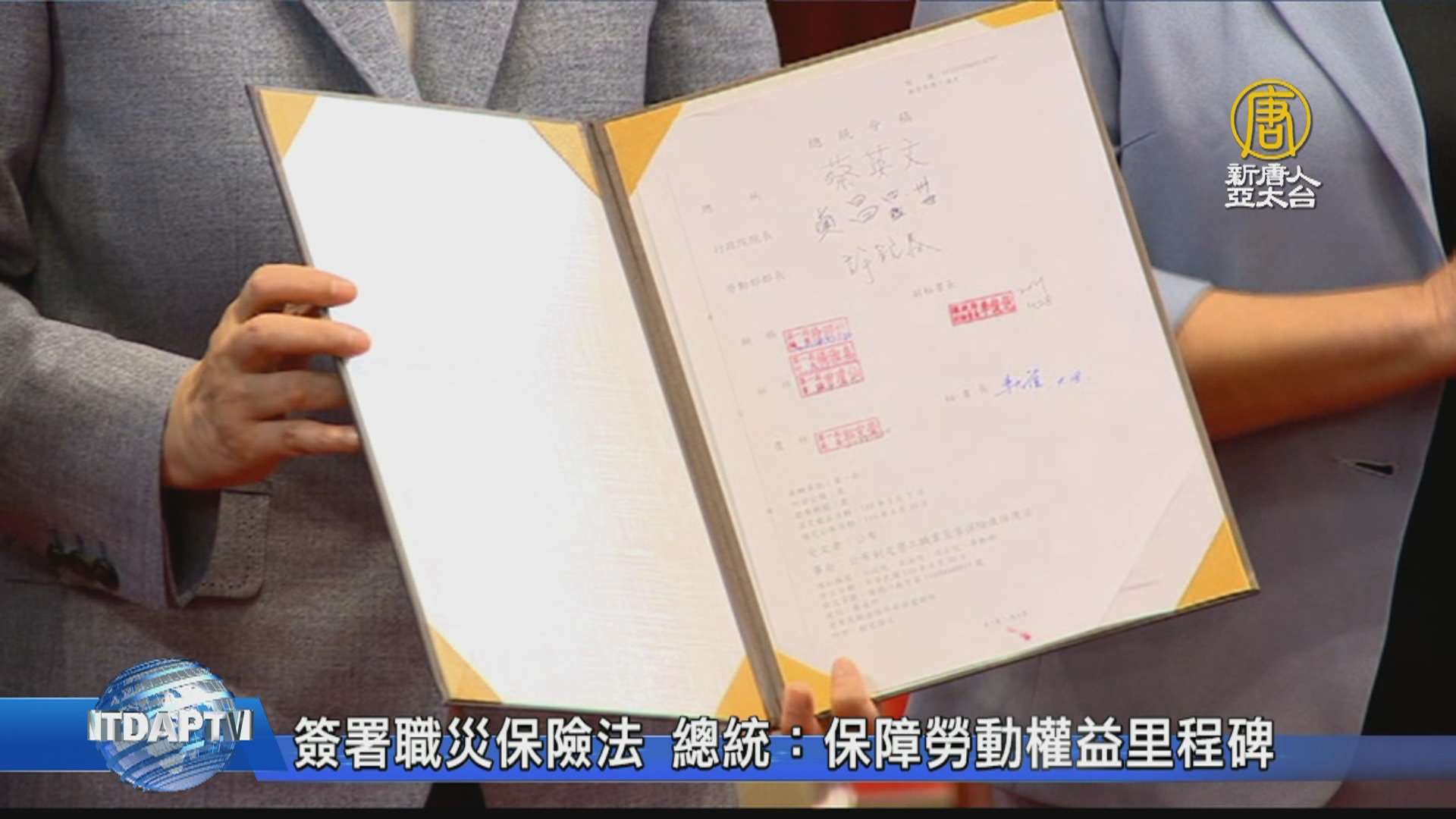 【新唐人亞太台 2021 年 04 月 30 日訊】立法院日前三讀通過《勞工職業災害保險及保護法》,總統蔡英文今天(30日)簽署法案,她期許勞動部在職災保險法上路後,積極落實法律,當勞工的靠山。
