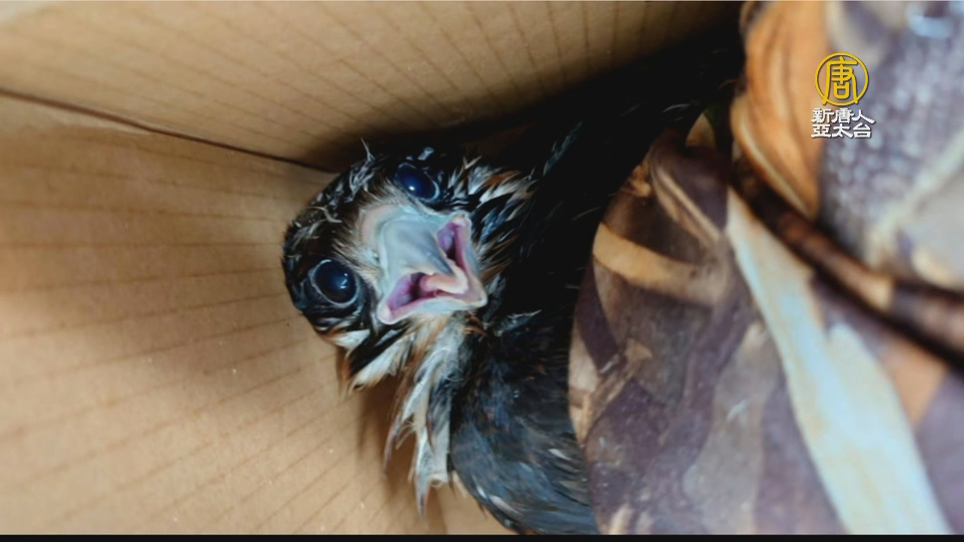【新唐人亞太台 2021 年 04 月 30 日訊】猛禽類「遊隼」是台灣所有隼中,體型最大、最壯碩的,其實在新北瑞芳的酋長岩,就有遊隼棲地,近年復育有成,不過,周二,有隻遊隼幼鳥,迫不及待想要離巢試飛,沒想到卻摔落距離鳥巢40公尺的地面、無法回巢,幸好及時發現,經新北市動保處初部檢視,幼鳥並無大礙,目前已交由台灣猛禽研究會帶回照料。