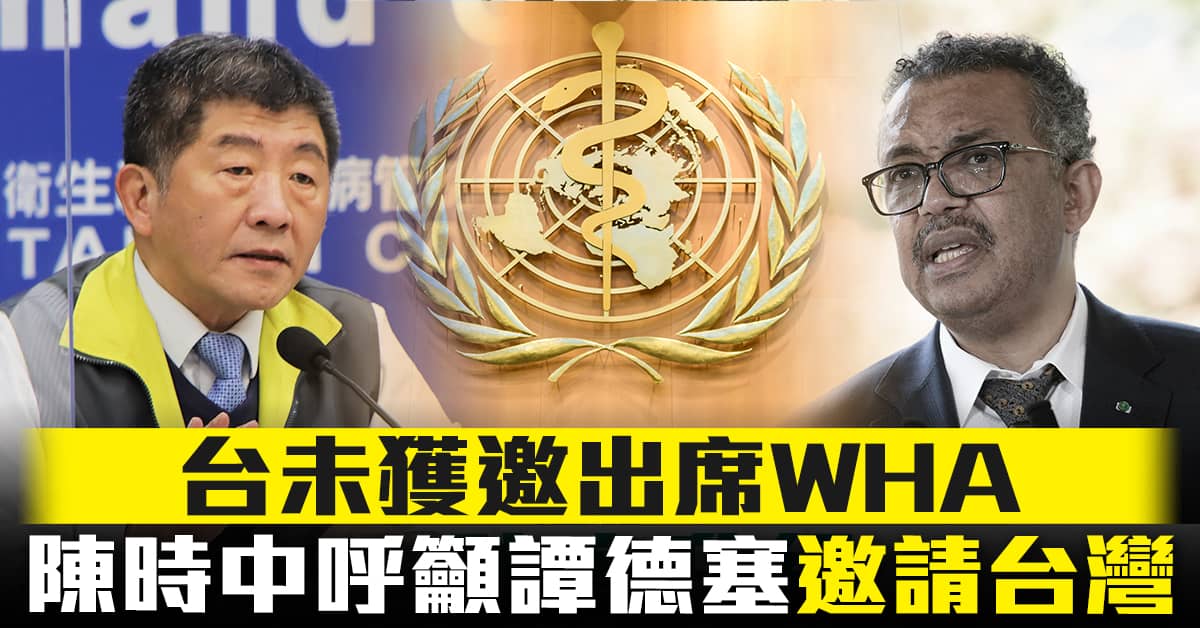 指揮官陳時中向世衛秘書長譚德塞,公開呼籲。因為世界衛生大會(WHA)24日,就要在瑞士日內瓦以視訊方式舉行。今年4月初,世界衛生組織(WHO)陸續向會員國及觀察員,寄出開會通知。但台灣到現在,尚未收到邀請。