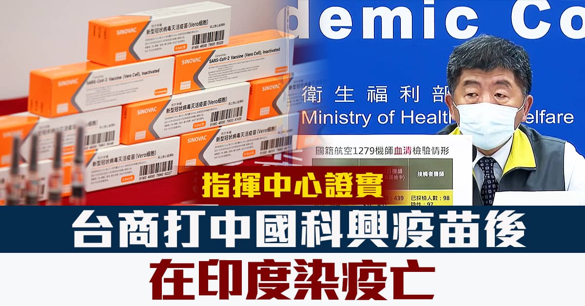 中央流行疫情指揮中心指揮官 陳時中:「從印度的台商,聽說有人就是,死亡的案例,那我們也,從這邊也確認的是,他有打過,他只打了一劑,打了一劑的科興疫苗。」