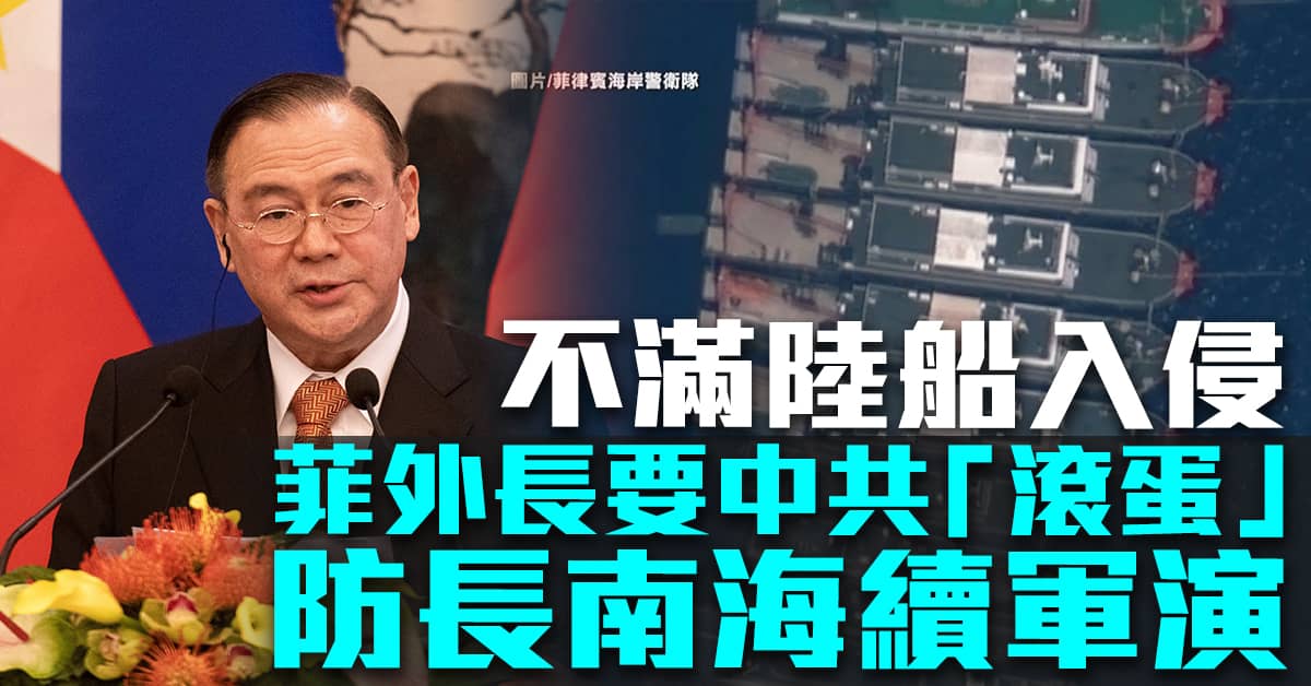 不滿陸船入侵 菲外長要中共「滾蛋」.防長南海續軍演