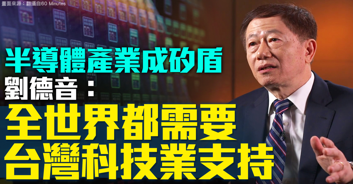 【新唐人亞太台 2021 年 05 月 03 日訊】台灣晶圓代工龍頭台積電,董事長劉德音,首度接受美國 CBS 新聞節目《60 分鐘 (60 Minutes)》專訪,他表示半導體產業是台灣的「矽盾」,世界各國都需要台灣高科技產業的支持,他也認為美國應該投資研發,讓更多碩博士投入半導體領域,而不是改變既有供應鏈。