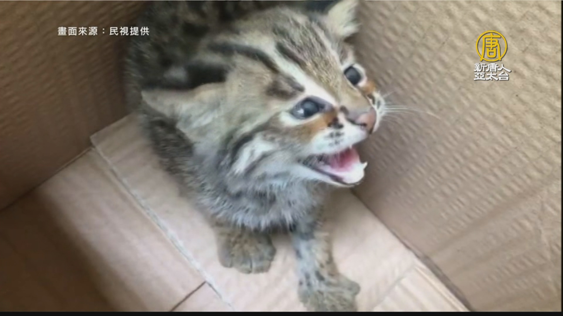 小小石虎在紙箱內模樣惹人憐愛,不過有人一靠進,小石虎還是會張嘴、發出威嚇,苗栗縣政府農業處表示,後龍、通霄的山區,不到一個禮拜內,接連發現3隻落單的小石虎。