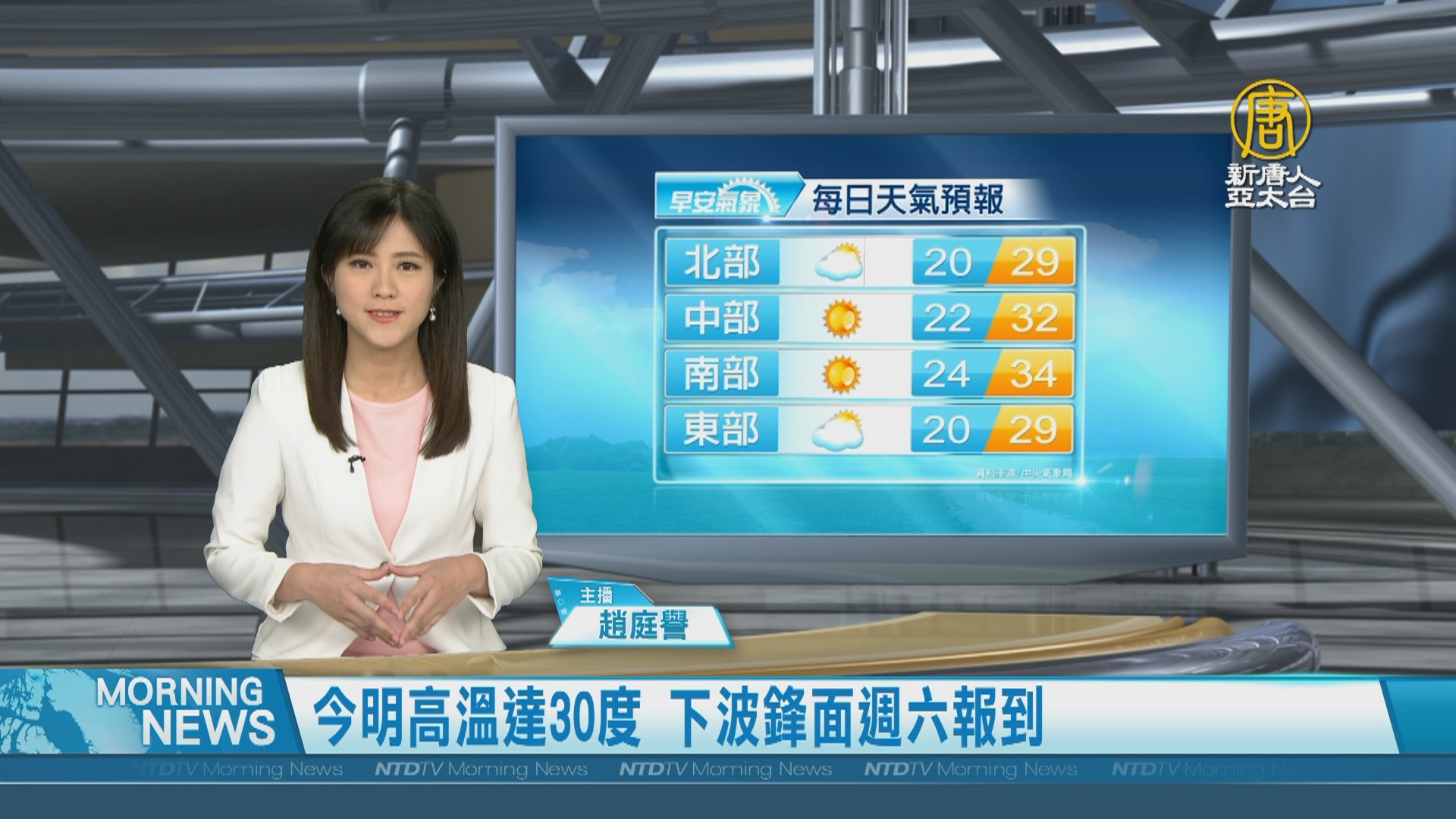 【新唐人亞太台 2021 年 05 月 06 日訊】歡迎您收看5月6日的早安新唐人,我是趙庭譽,先來帶您關心天氣情況。梅雨季首波鋒面昨天快速通過台灣,北部出現明顯雨勢,中部山區和東部也有降雨,但入夜後雨勢緩和。氣象局預測,今、明鋒面遠離,各地恢復多雲到晴的穩定天氣;第2波梅雨鋒面預計週六週日位於北部海面,但對台灣影響程度仍待觀察。帶您一起來看到國際媒體重要訊息。