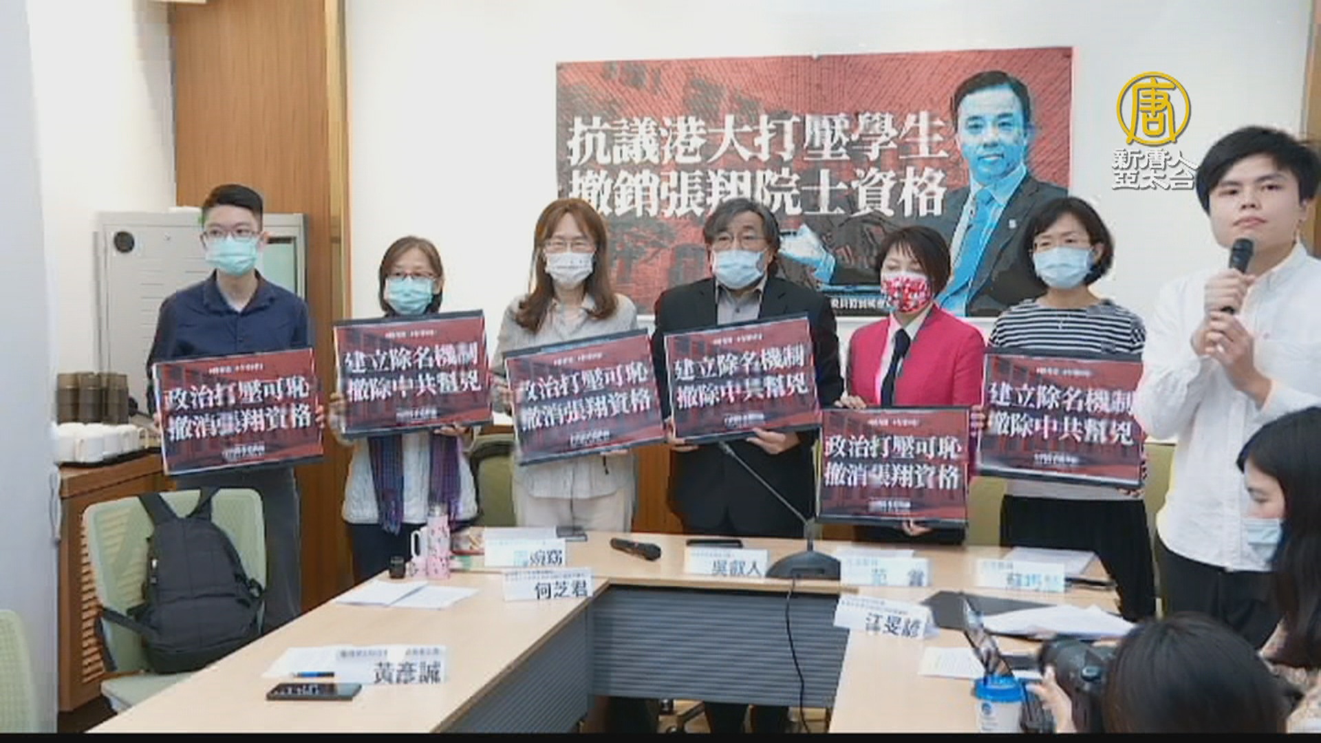 【新唐人亞太台 2021 年 05 月 06 日訊】香港大學校方上週聲明,譴責香港大學學生會所謂「偏激言行」,中止為學生會收取會費的慣例,收回學生會辦公室。學者抨擊港大校長張翔支持「港版國安法」,不保護學生免於中共清算,反而成為政權打手。學者、台灣學生聯合會與台灣立法院國會議員蘇巧慧、范雲(6日)召開記者會,喊話中央研究院,撤銷美籍華人張翔的院士榮銜。