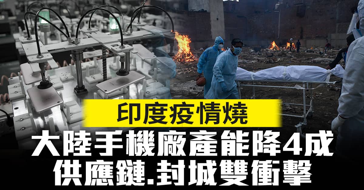 印度疫情燒大陸手機廠產能降4成 供應鏈.封城雙衝擊