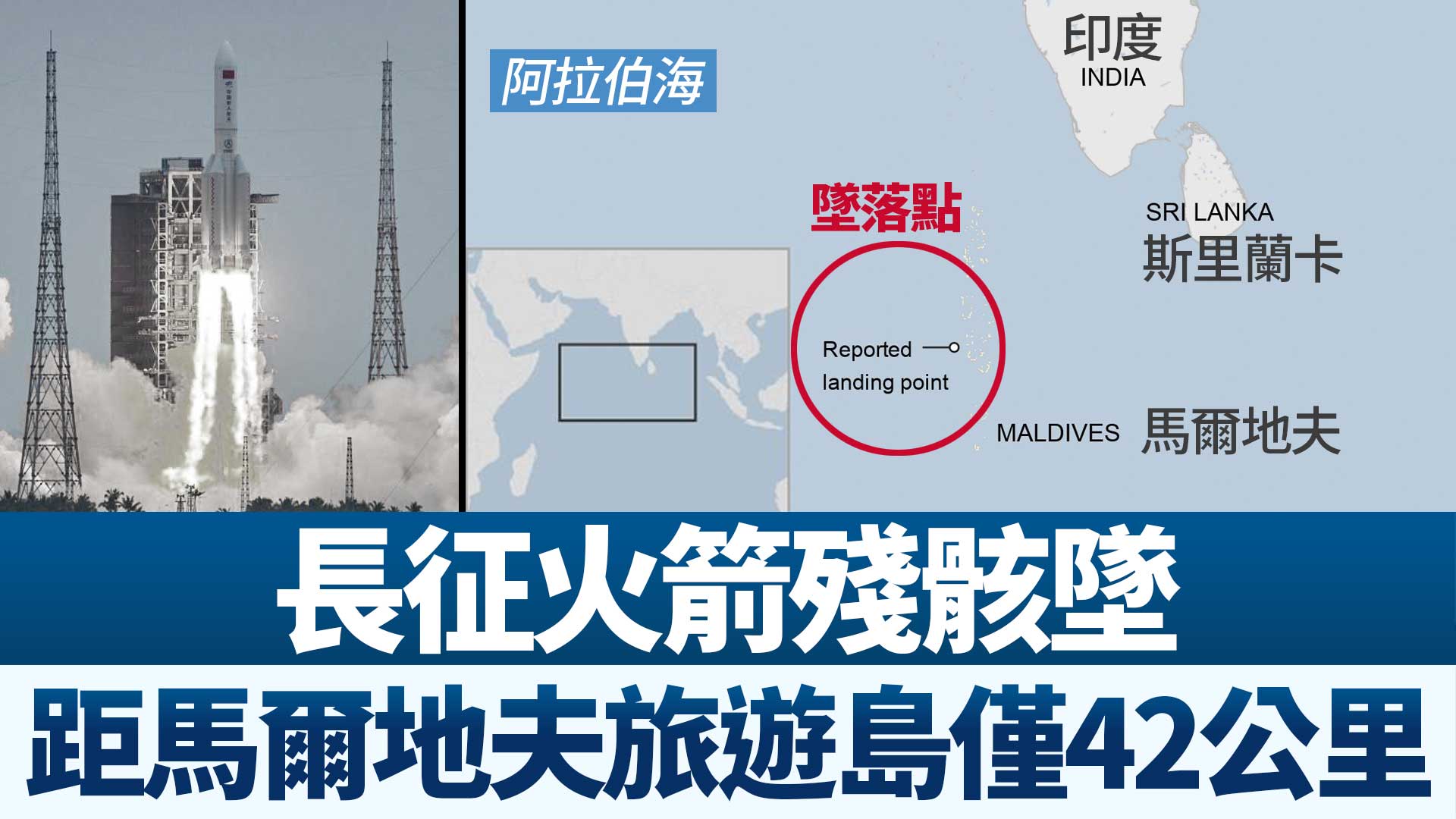 【新唐人亞太台 2021 年 05 月 10 日訊】焦點話題再來關心,中共長征火箭5號火箭重達21噸的殘骸,週日被宣布墜落印度洋,地點是在馬爾地夫西南方近海,距離最近的渡假飯店有人島嶼只有約42公里;一般定義中,距陸地40多公里的海面,仍屬「近海」,有可能有漁船作業,或是商船經過,仍具有危險性。美國宇航局局長批評,中共不負責任。儘管如此,中共官媒編輯還揚言,接下來要「密集發射」火箭。