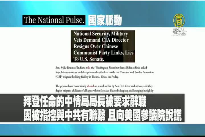 【新唐人亞太台 2021 年 05 月 11 日訊】繼續是美國國家脈動的報導:拜登任命的中情局局長被要求辭職,因被指控與中共有聯繫,且向美國參議院說謊。