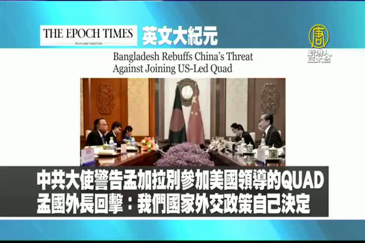 【新唐人亞太台 2021 年 05 月 13 日訊】首先來看到美國大紀元英文版報導:中共大使警告孟加拉別參加美國領導的「四方安全對話」,孟國外長回擊表示,我們國家外交政策自己決定。