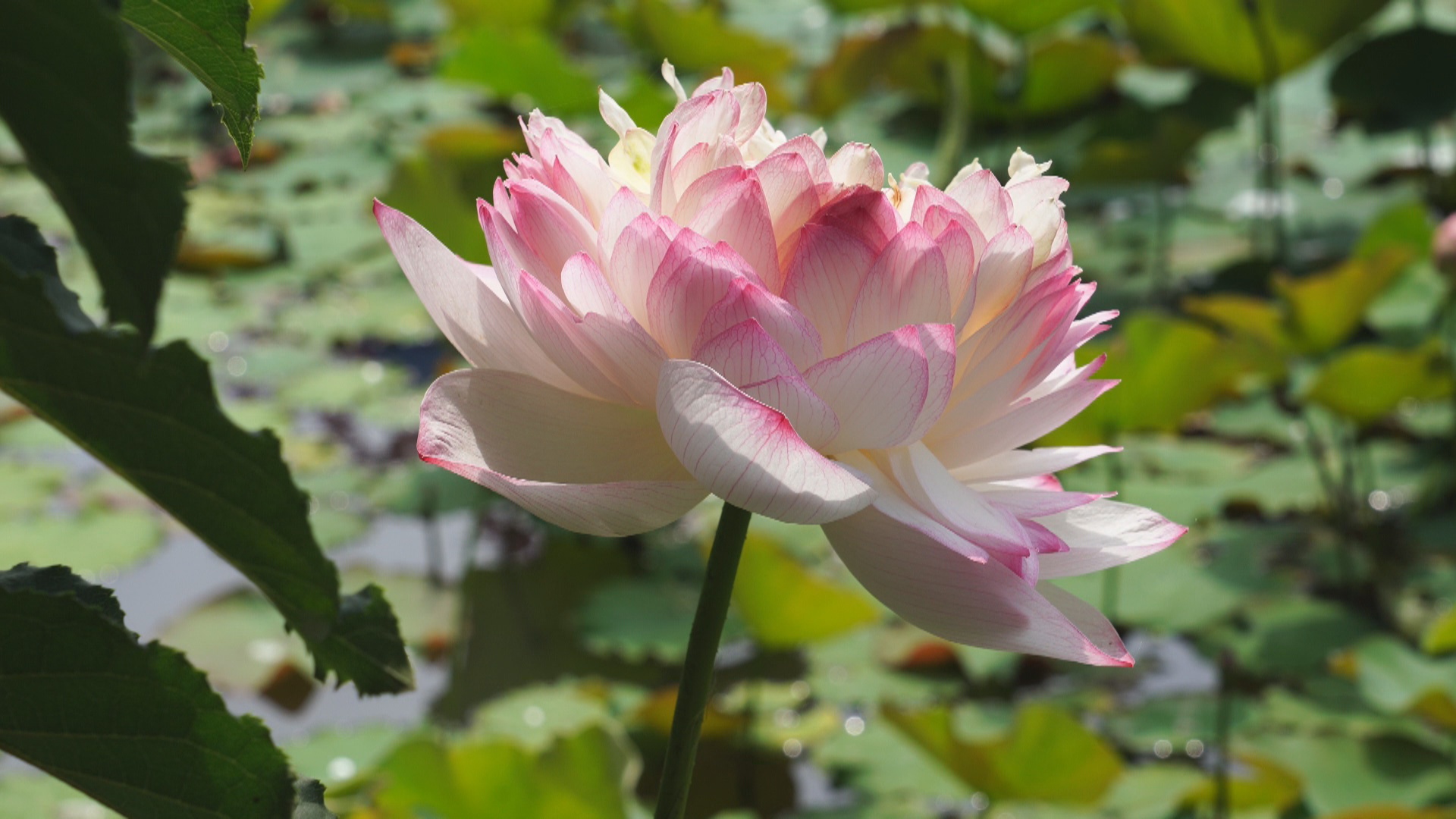 民眾:「它很特別啊,就跟我們一般看的不一樣,一般荷花可能很大片,只是它花瓣很多,然後一顆一顆慢慢綻放的感覺,旁邊又有錦鯉游來游去,看花的感覺會讓心情平靜很多。」