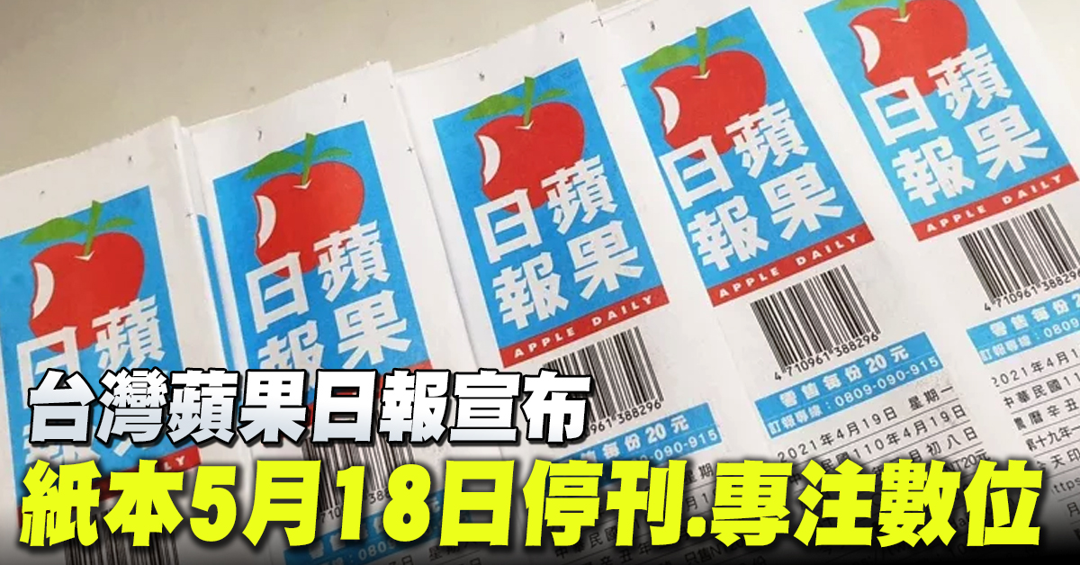 台灣蘋果日報宣布 紙本5月18日停刊.專注數位