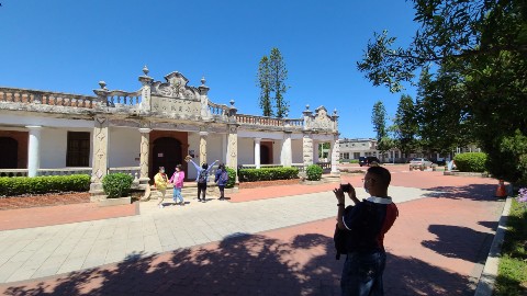 防疫升級,即便是假日,著名景點金水國小仍大門緊閉,遊客只能在館外拍照留念。(圖/金管處提供)