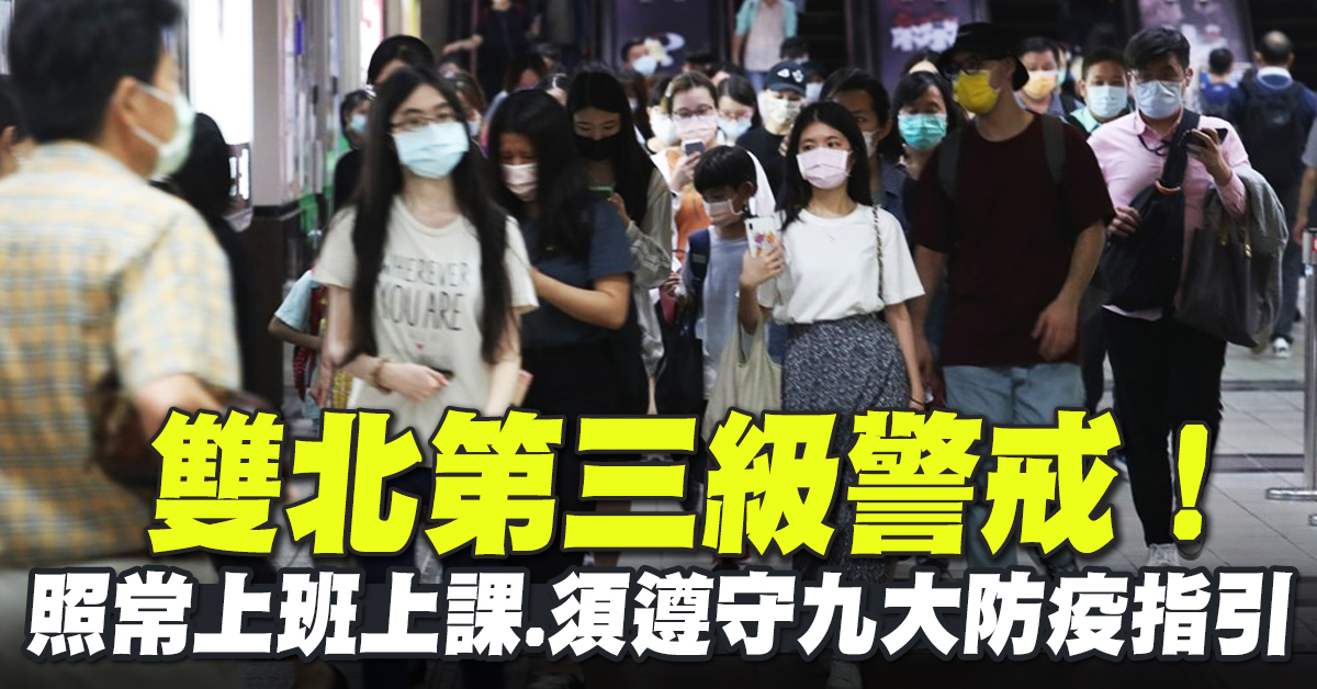 台灣疫情持續升溫,15日新增180例本土病例,行政院長蘇貞昌率領衛福部、經濟部等各部會部長,大動作召開記者會,宣布台北市、新北市,即日起到5月28號,升到第三級警戒,民眾必須遵守9大防疫指引,否則將依照傳染病防治法進行處分。