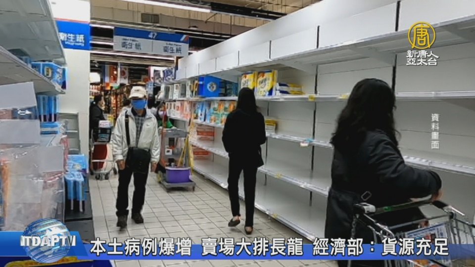 【新唐人亞太台 2021 年 05 月 15 日訊】台灣一口氣增加180例本土確診,各賣場瞬間湧入大批採購人潮。也因此,經濟部已經協調各賣場,針對衛生紙、泡麵等民生物資,同類商品每人限購2份為原則,並強調,廠商已經加班生產,後續貨源供應無虞。