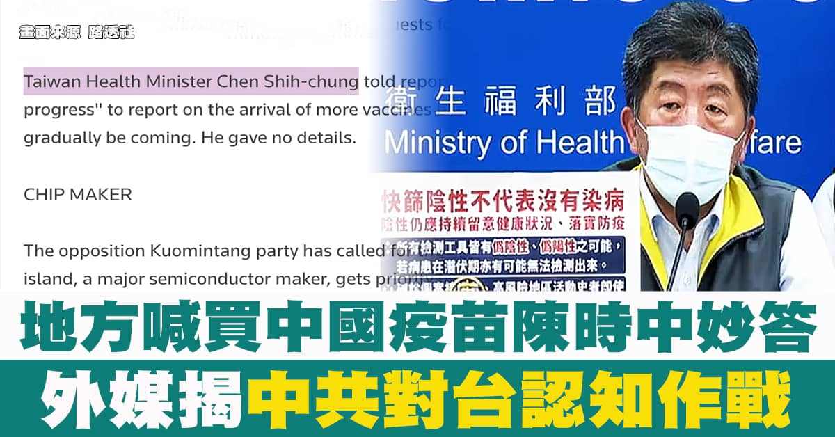 地方喊買中國疫苗陳時中妙答 外媒揭中共對台認知作戰