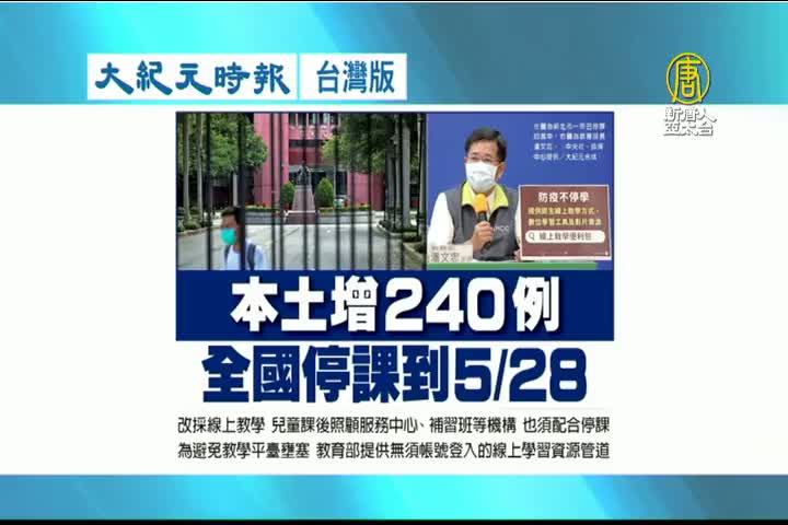 【新唐人亞太台 2021 年 05 月 19 日訊】繼續看到大紀元時報台灣版報導:本土增240例,全國停課到5/28。