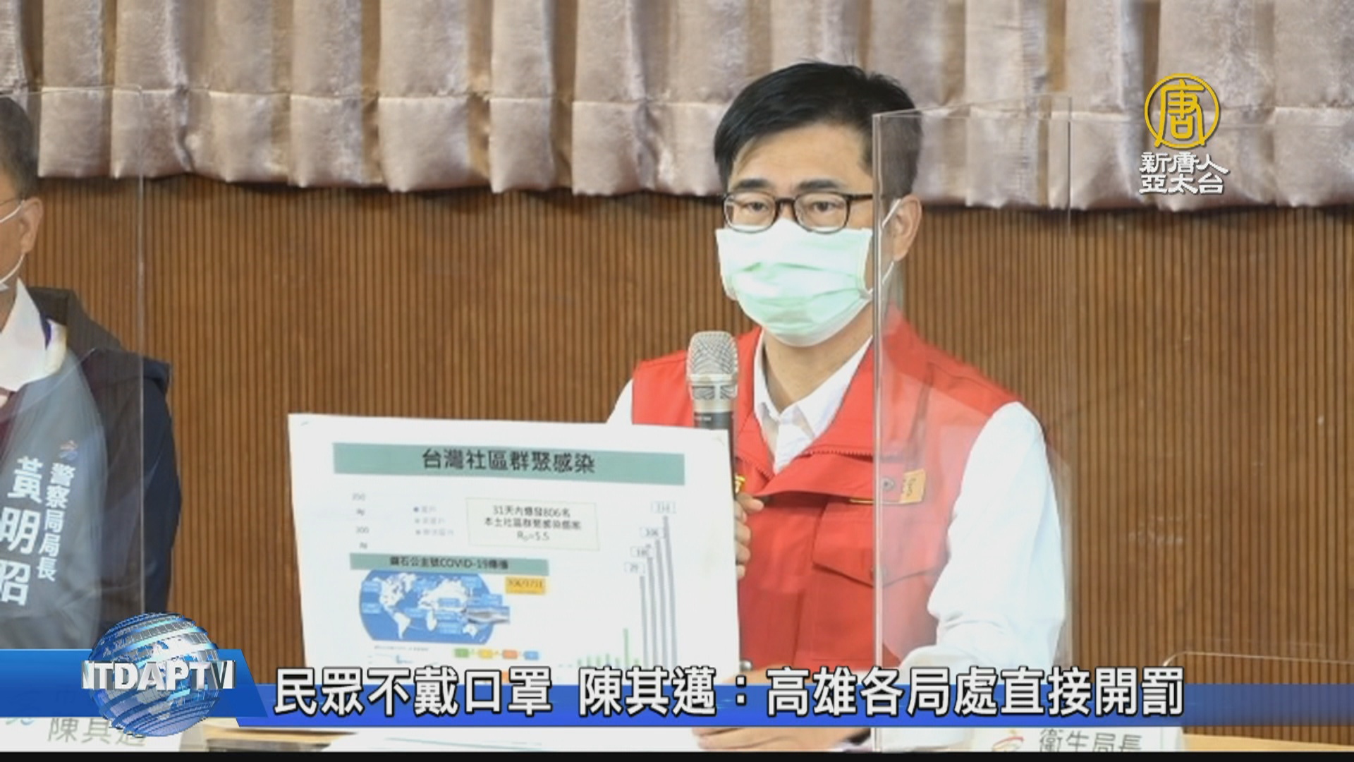 【新唐人亞太台 2021 年 05 月 19 日訊】疫情增溫,高雄市防疫進入準三級階段,高雄市長陳其邁上午宣布,如果民眾不戴口罩,授權各局處依法逕行開罰。