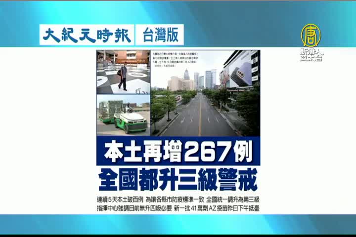 【新唐人亞太台 2021 年 05 月 20 日訊】繼續看到大紀元時報台灣版報導:本土再增267例,全國都升三級警戒。