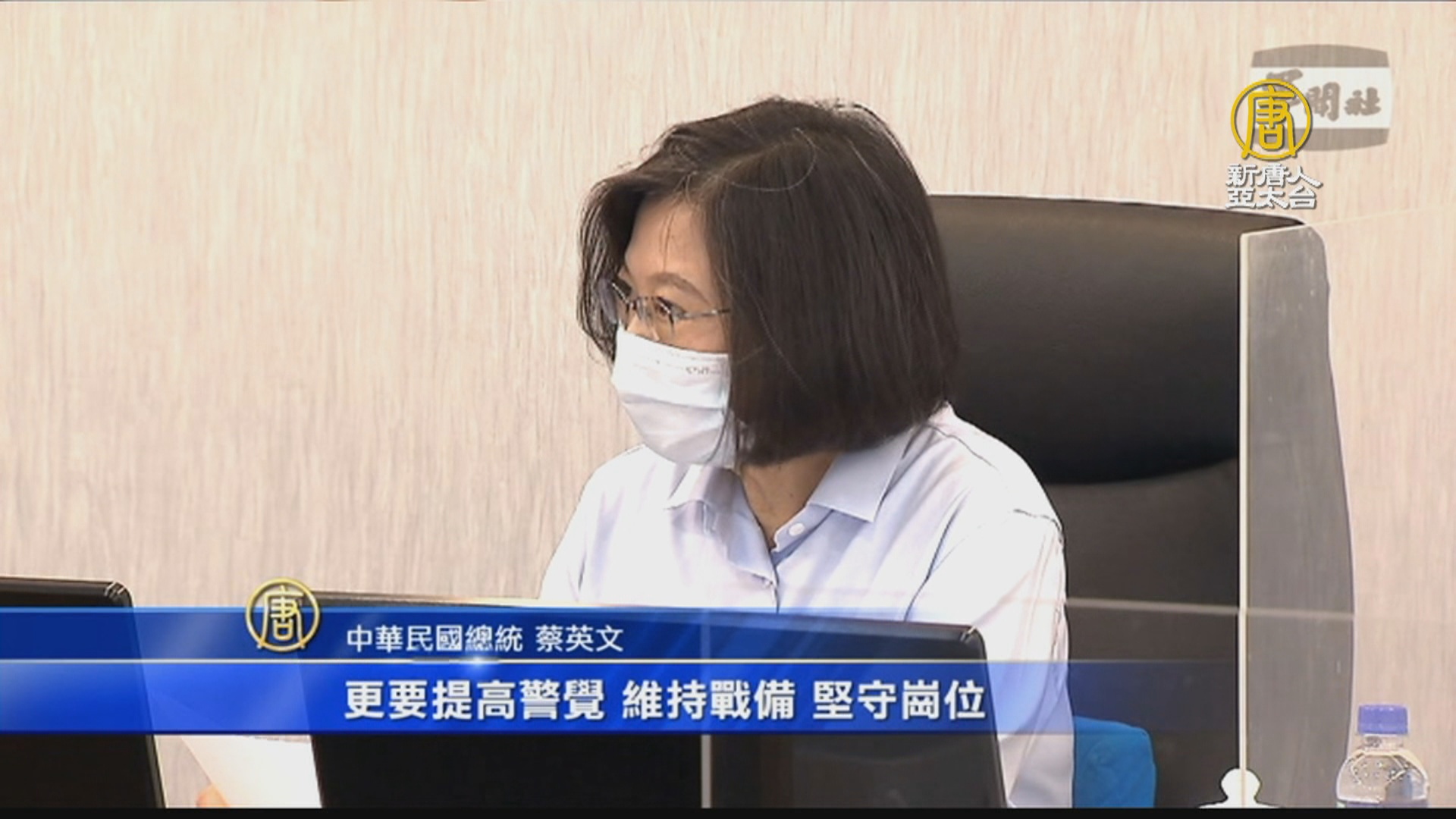 【新唐人亞太台 2021 年 05 月 20 日訊】總統蔡英文上午視導國防部「國軍疫情指揮中心」,勉勵國軍全力配合全國防疫,同時間仍要做好戰備,提醒國軍一定要落實防疫,並盡速規劃讓國軍施打疫苗。