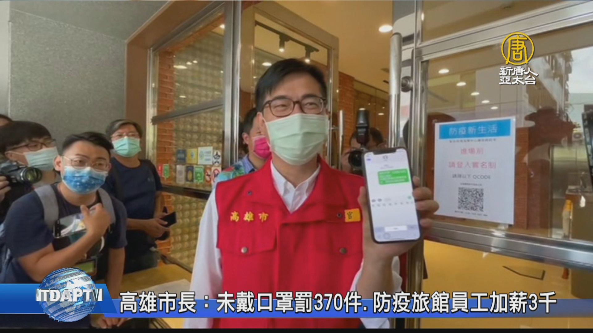【新唐人亞太台 2021 年 05 月 20 日訊】台灣全境第三級警戒,外出要全程戴口罩,高雄市長陳其邁表示,第一天高雄市就開罰370件,會嚴格執法。他視察防疫旅館時宣布,即日起替第一線的防疫旅館員工,加薪3千新台幣,感謝他們冒著風險服務,防疫津貼每個月約2百萬元預算,由市政府支應。