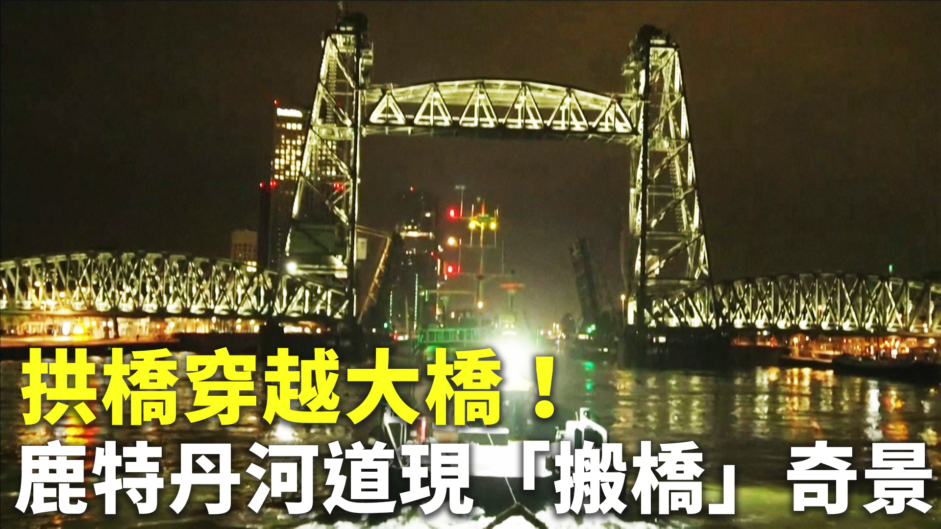 【新唐人亞太台 2021 年 05 月 22 日訊】荷蘭鹿特丹的河道上,近日出現「搬橋」奇景。一座長220公尺的大型拱橋,要搬動到工業區,暫時替代另一座橋樑。在拖船的拉動下,拱橋穿越了幾座著名大橋,場面壯觀。