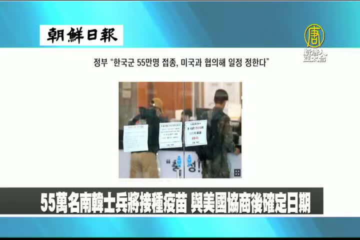 【新唐人亞太台 2021 年 05 月 24 日訊】來看到韓國朝鮮日報報導:55萬名南韓士兵將接種疫苗,與美國協商後確定日期。