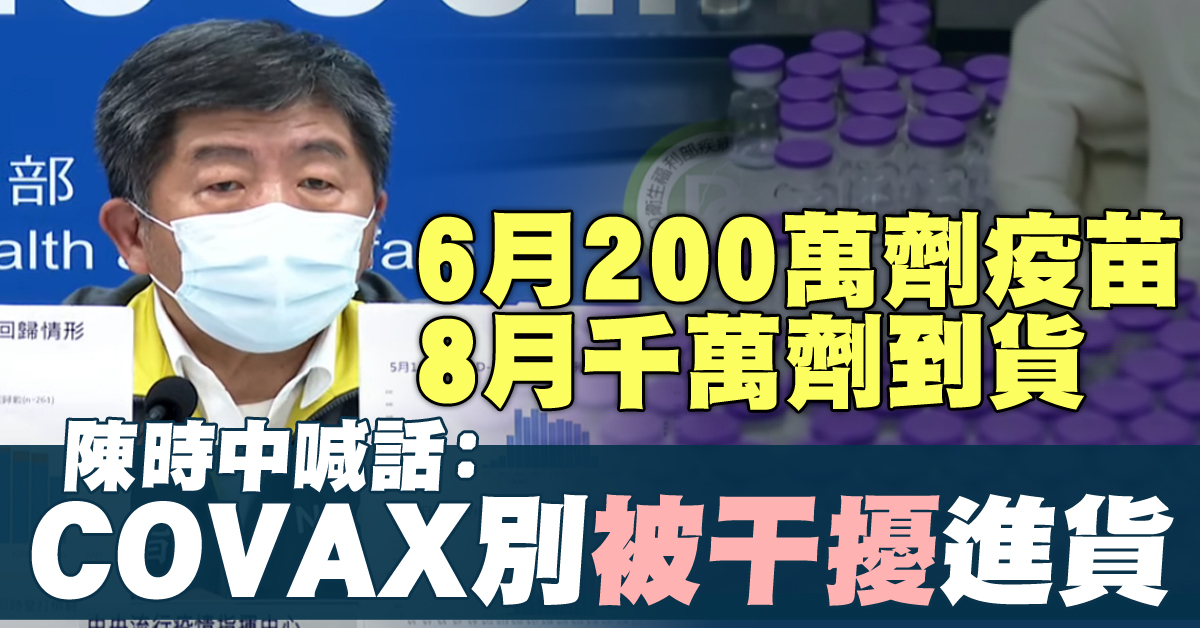 6月200萬劑疫苗 8月千萬劑到貨 陳時中喊話:COVAX別「被干擾」進貨