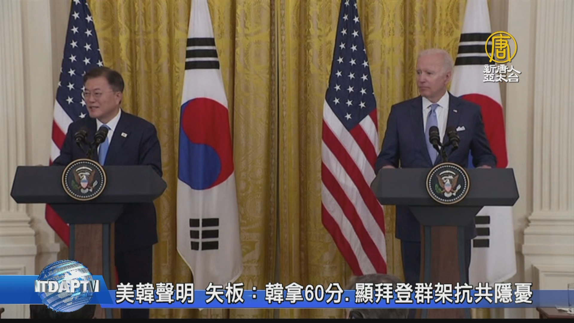 【新唐人亞太台 2021 年 05 月 26 日訊】美韓聯合聲明,韓國政府首度公開關切台灣海峽和平。不過有分析認為,韓國只做到60分;這反映拜登政府對中政策未定、有時強有時弱,也反映拜登盟友群架抗共模式的隱憂。至於文在寅政府為何強化與美陣線?分析提出三觀察:疫苗、民意、選舉。
